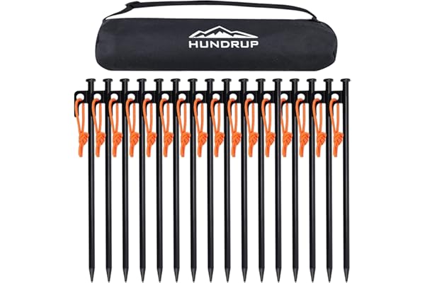 HUNDRUP【強化版】 ペグ 20cm/25cm/30cm/40cm 10本/16本 ペグセット 鍛造ペグ レーザー溶接 反射材入りロープ スチール ソリッド 収納ケース付き 設営用具 キャンプ テントペグ アウトドア 登山 硬い土 砂地 草地用について