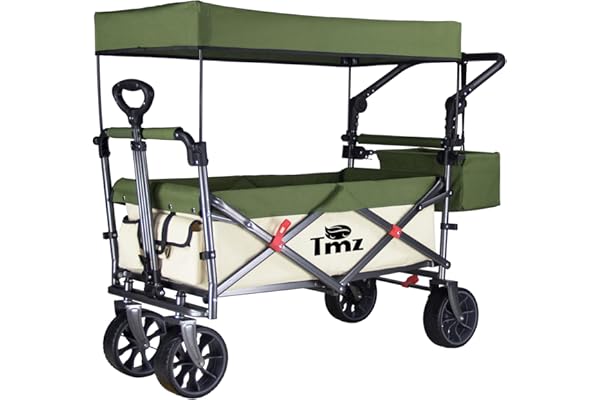 TMZアウトドアワゴン 屋根付き キャリーワゴン 折りたたみキャリーカート耐荷重 120KG 大径ゴムタイヤ 買い物用、ピクニック、お花見 キャンプカート(オリーブ)について