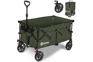 Sekey 大容量135L 耐荷重150kg 驚くほどコンパクト&軽量 【類似品で最小級の収納サイズと重量】 【ブレーキ付き】 キャリーワゴン 【小回りの良いノーパンクタイヤ】 簡単組立 折り畳み ワンタッチ収束型 アウトドアワゴン キャンプカート ダークグリーン 口コミ