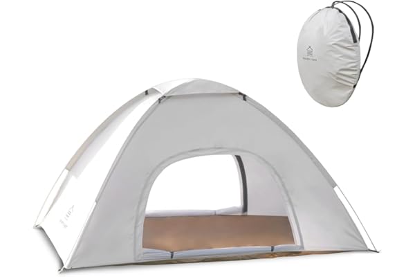 ワンタッチで開いて簡単に収納できます。大人一人なら贅沢に使えますし、2人でもちょっと寛ぐには十分。正方形じゃなくて長方形なのがちょうどいいです。フェスに持ち込みましたが背もそこまで高くなくて後ろの人にも気を使わないし、フルクローズなので中でサッと着替えとかもできるのはありがたいです。ペグはひょろひょろなのとハンマー持ってないと使いにくいタイプのものなので速攻で全部折れ曲がりましたがそんなもんでしょう。使い勝手が良くてどこにでも持ち歩けます。