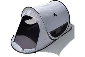 総重量:(約)2.0kg サイズ:(約)幅235×奥行113×高さ90cm、収納サイズ:(約)直径70×高さ4cm 主素材:[フレーム]スチールワイヤー [フライシート]ポリタフタ(裏面:ソーラーブロックコーティング、耐水圧450mm、UV-CUT加工) ソーラーブロック生地採用 フルクローズタイプ